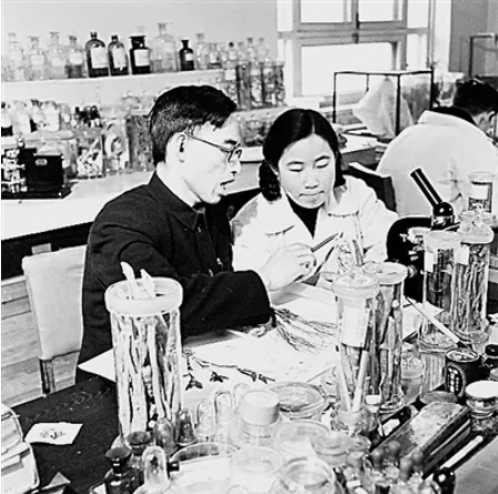 20世紀50年代,屠呦呦(前右)與老師研究中藥。資料圖片